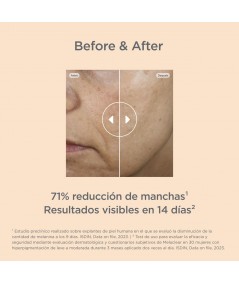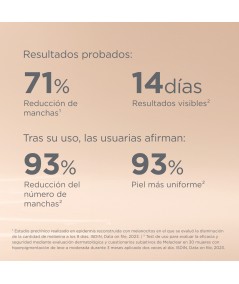 Melaclear ha sido testado, demostrando un 71% de reducción de manchas¹ oscuras para una piel homogénea y radiante.
