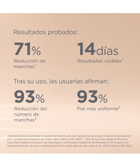 Las manchas hiperpigmentadas en el rostro pueden suponer una preocupación para muchas personas. Melaclear contribuye a lograr un tono de piel uniforme y un rostro luminoso, ofreciendo resultados rápidos y sostenidos en el tiempo.