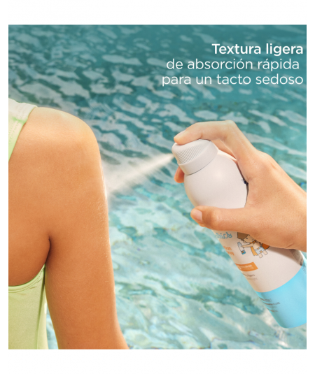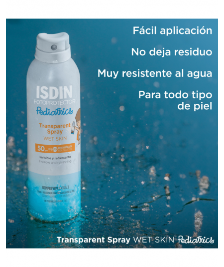 El fotoprotector Transparent Spray Wet Skin Pediatrics mima la piel de los niños. Su fórmula mejorada tiene una textura ligera que facilita la absorción. Alta protección con un tacto sedoso y cuidado.