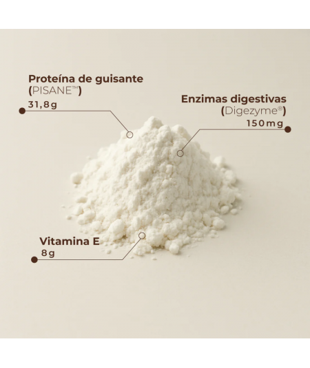 - Proteína de guisante (PISANE™): Proteína vegetal de alta pureza, digestibilidad y perfil completo de aminoácidos. Ayuda a conservar y aumentar la masa muscular.