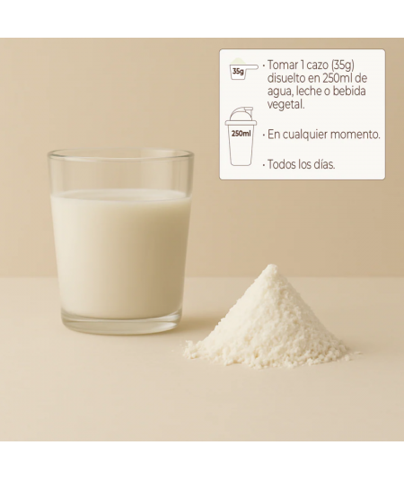 - Contribuye al aumento y mantenimiento de la masa muscular gracias a su alto contenido en proteína pura y de alto valor biológico. Ayuda a prevenir la pérdida de masa muscular asociada al envejecimiento (sarcopenia).