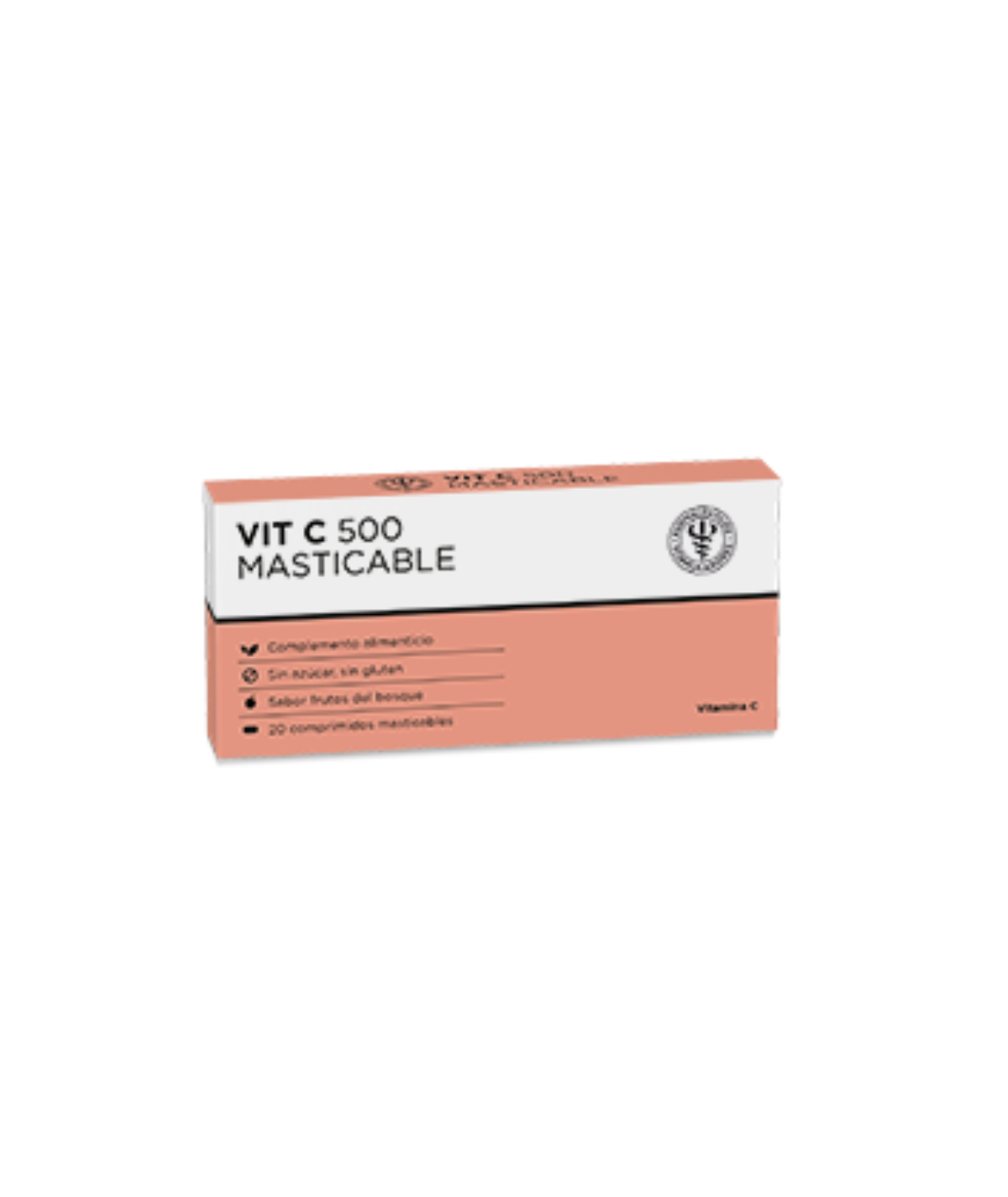 Complemento alimenticio en comprimidos masticables a base de vitamina C (500 mg por comprimido). Sin azúcar. Sabor frutos del bosque.