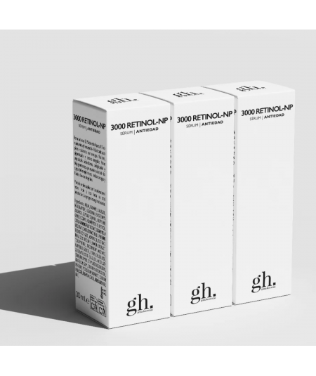 GH 0,3 RETINOL-NP está formulado con 0,3 % Retinol puro, estabilizado en aceite de soja rico en aceites omega 3, 6 y 9, 4 % de Niacinamida y 1 % Hexapéptido-10.