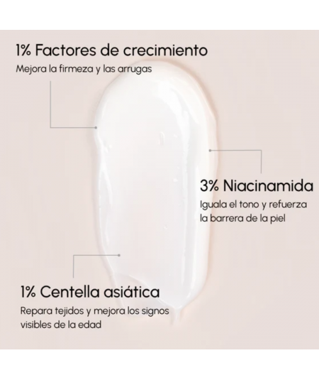 - Además, se trata de una crema altamente regenerante y calmante, gracias a la Centella asiática y a los factores de crecimiento que regeneran los tejidos con más rapidez.