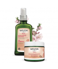 Por la mañana aplicar el bálsamo: Masajea cuidadosamente alrededor del ombligo con movimientos circulares cada vez más amplios y en el sentido de las agujas del reloj, cada pecho con movimientos suaves y circulares, evitando la zona del pezón y desde las rodillas hacia arriba realiza movimientos con la punta de los dedos y vuelve hacia la rodilla con la palma de la mano. Repetir en cada zona 3 veces. Por la noche aplicar el aceite: Aplicar una pequeña cantidad de aceite sobre la piel ligeramente húmeda después de la ducha o el baño. Masajear suavemente hasta su completa absorción.