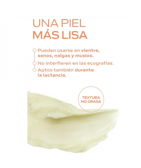 Dos texturas diferentes para hidratar la piel y darle la flexibilidad que necesita para evitar la aparición de las estrías o reducir la visibilidad de las que ya han aparecido.